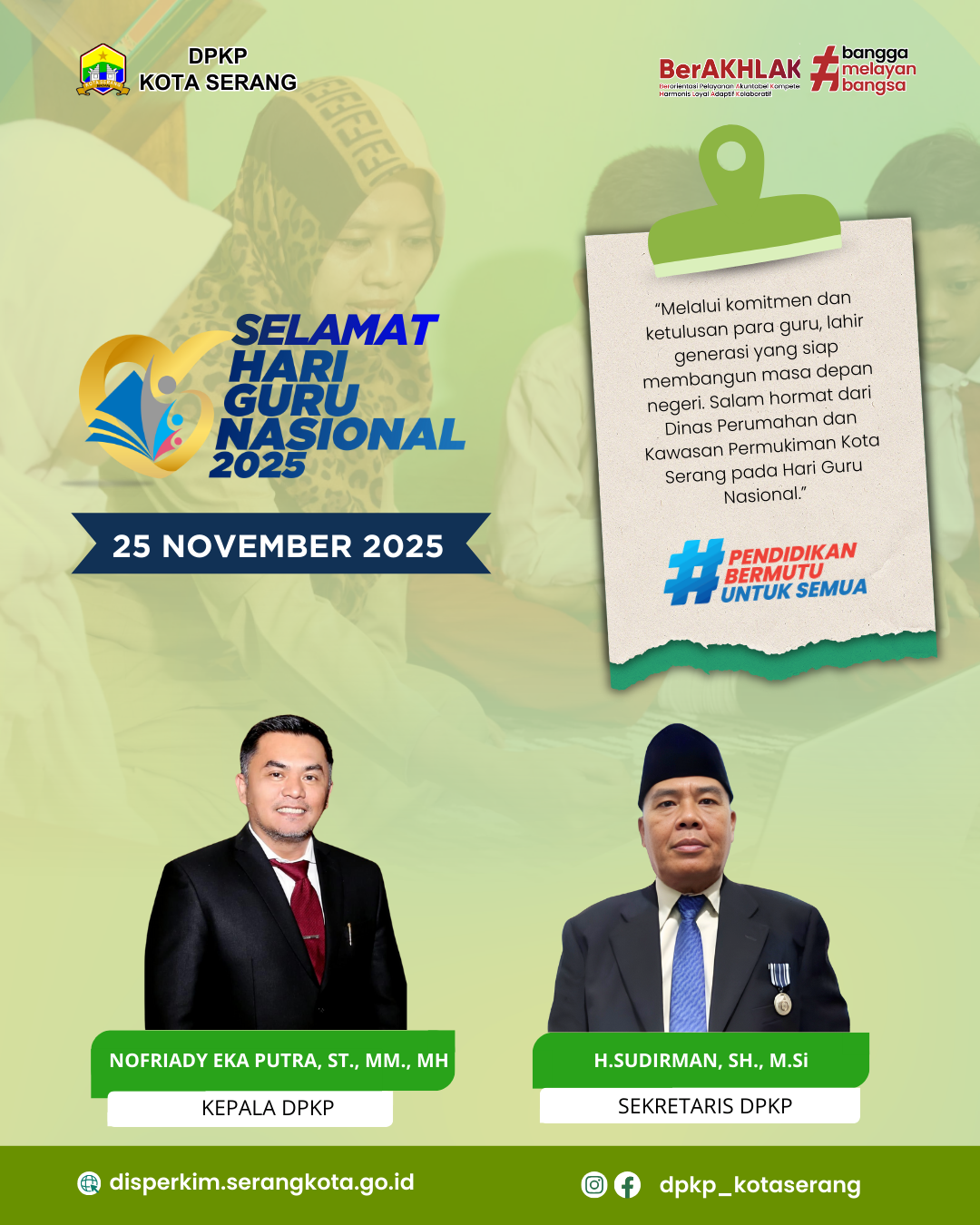 Dinas Perumahan dan Kawasan Permukiman Kota Serang memberikan dukungan penuh pada pelaksanaan Penjurian Lomba Inovasi Serang Madani 2025.Kepala Dinas Bapak...